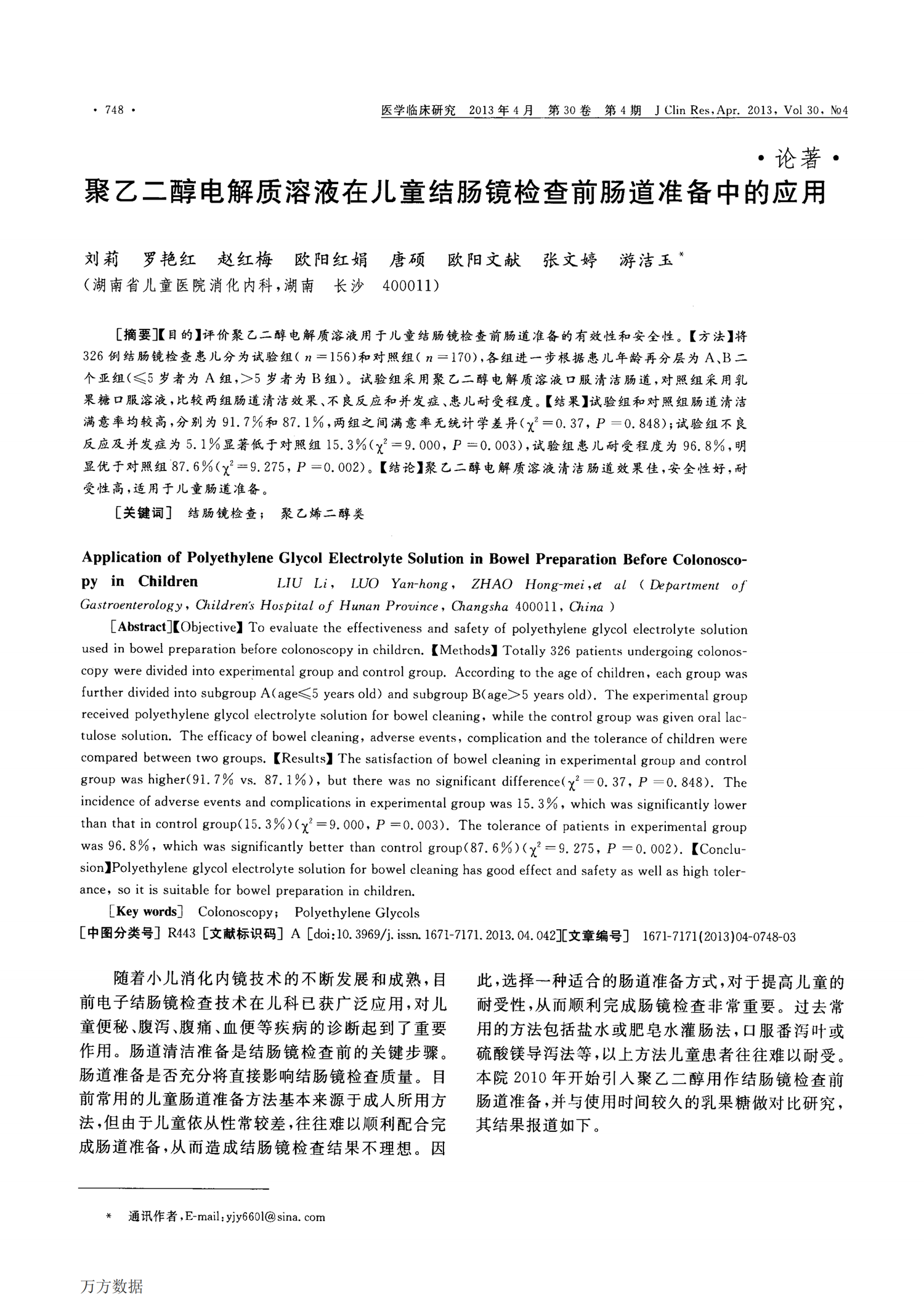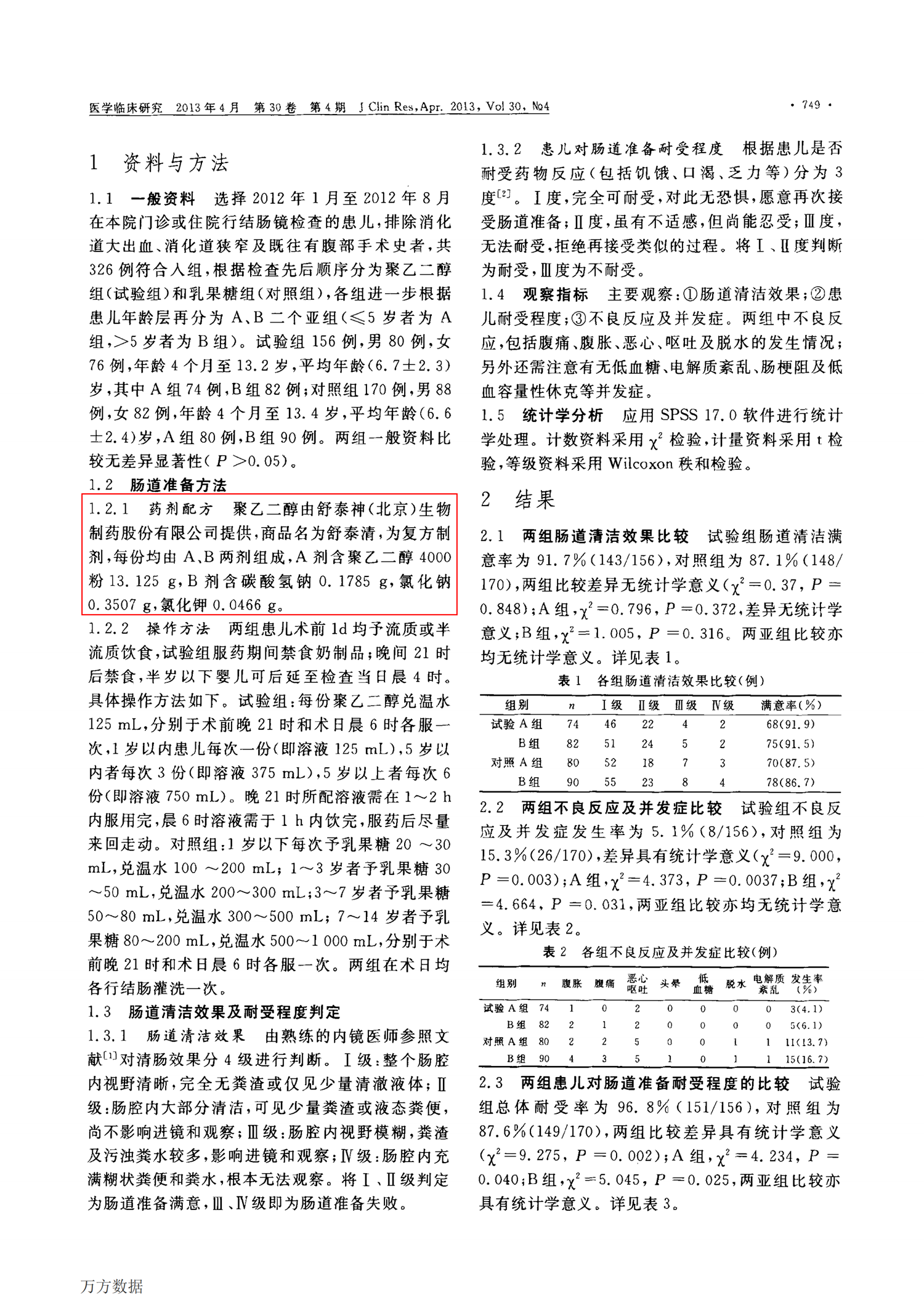 【舒泰清】2013 聚乙二醇電解質溶液在兒童結腸鏡檢查前腸道準備中的應用